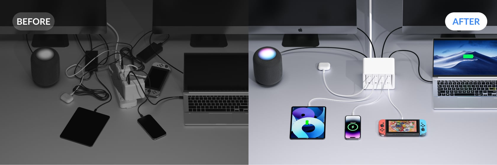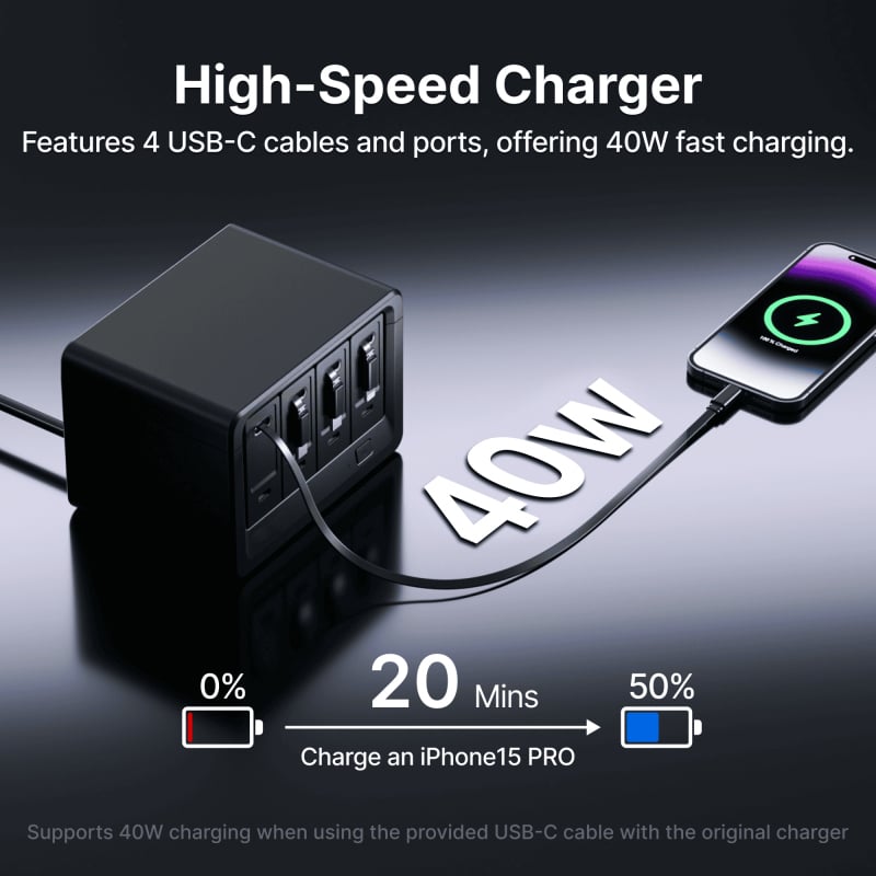 Easily detach the chargers from the station and take them with you wherever you go. Perfect for travel, business trips, or on-the-go charging—no extra adapters, chargers, or cables needed.