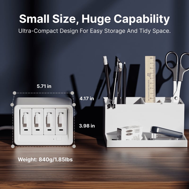 Occupying roughly the same space as most smartphones, this compact power station easily fits into small office or living areas. It helps reduce desktop clutter, making your workspace cleaner and more efficient.